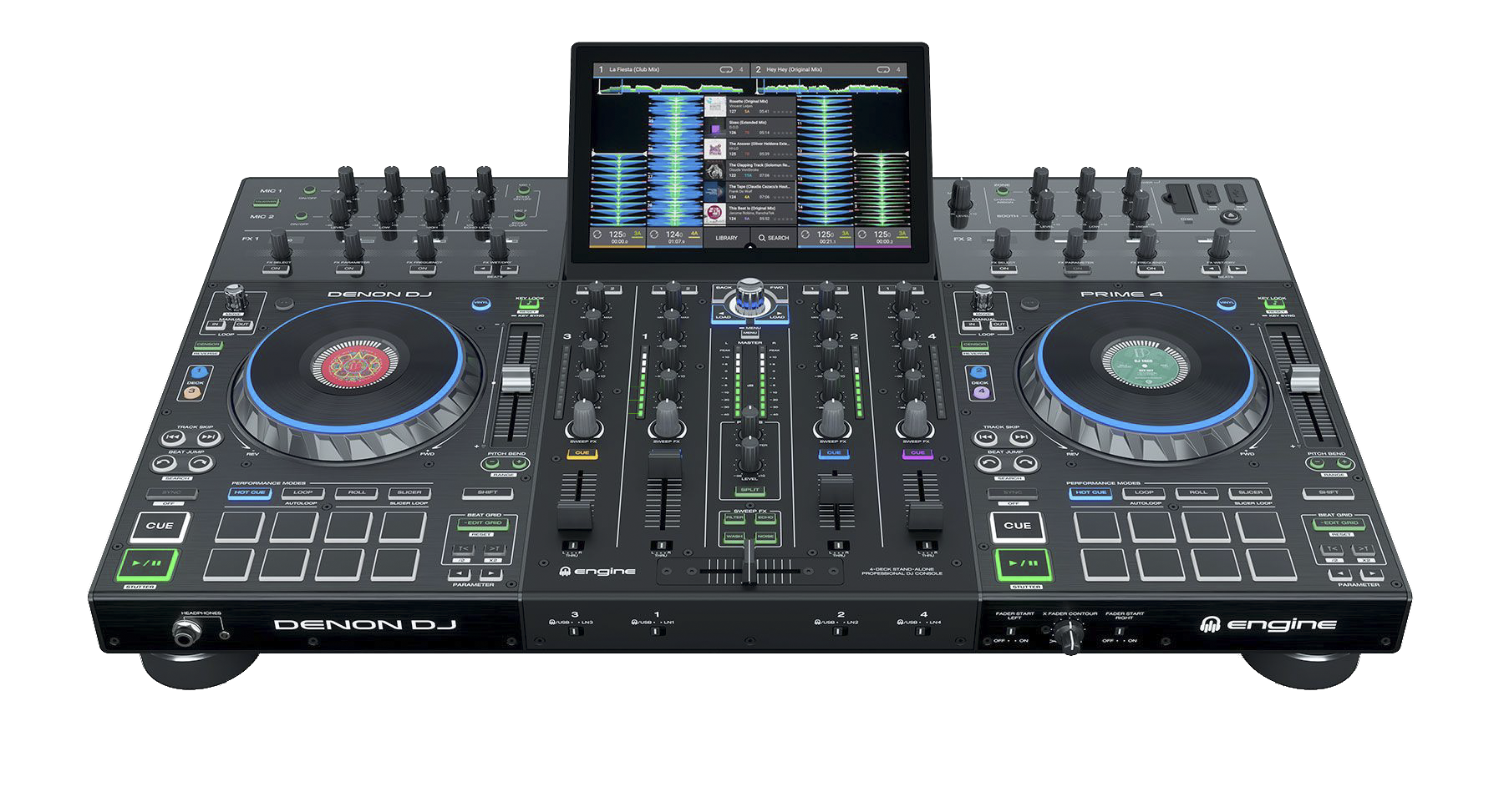 Denon DJ Prime 4 chính là siêu phẩm 4-Deck đầu tiên trên thế giới chơi độc lập hoàn toàn và sở hữu màn hình cảm ứng đa điểm 10-inch lớn nhất thế giới cùng khả năng kết nối WIFI để truyền nhận dữ liệu. Sở hữu hệ thống hiện đại nhất trong hệ sinh thái Prime của Denon, Prime 4 mang trong mình những tinh tuý tương tự SC5000 và X1800 được tích hợp vào một sản phẩm duy nhất.